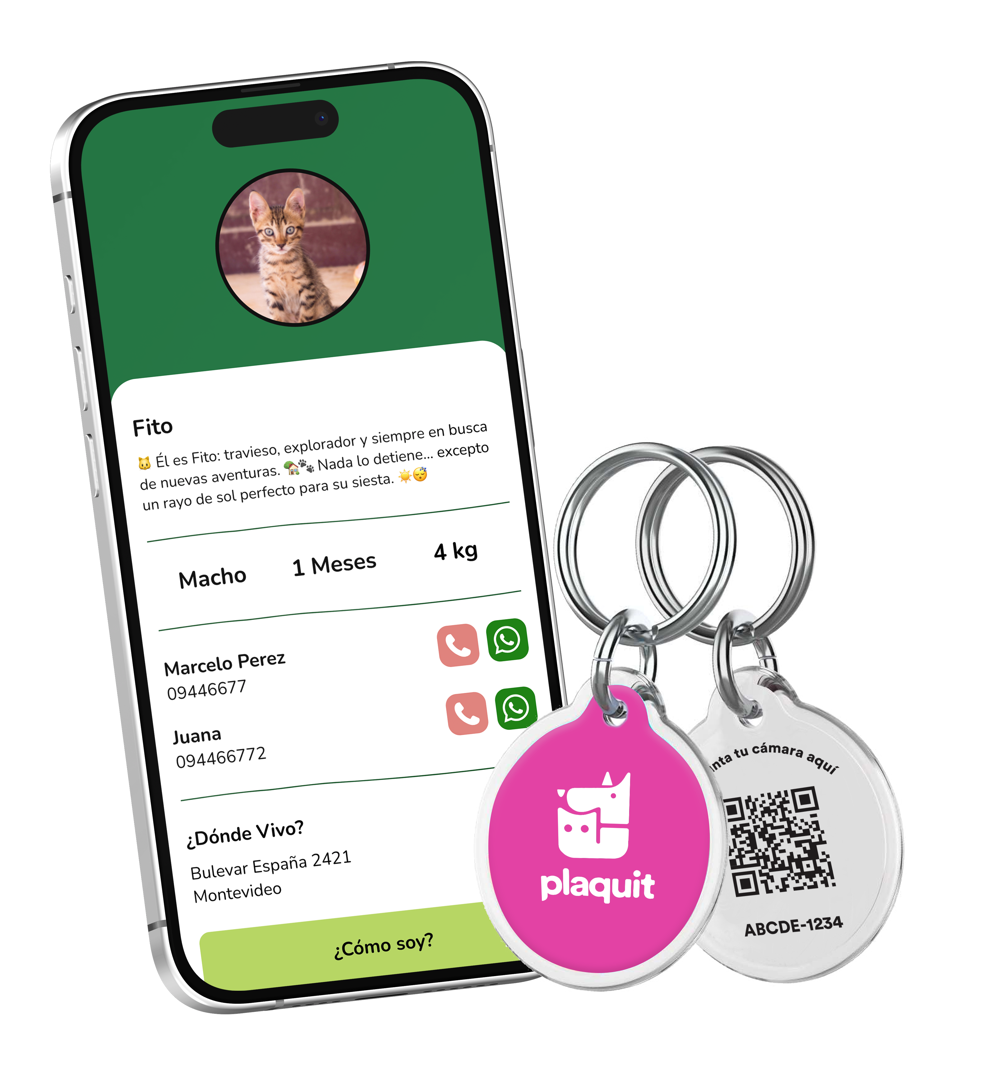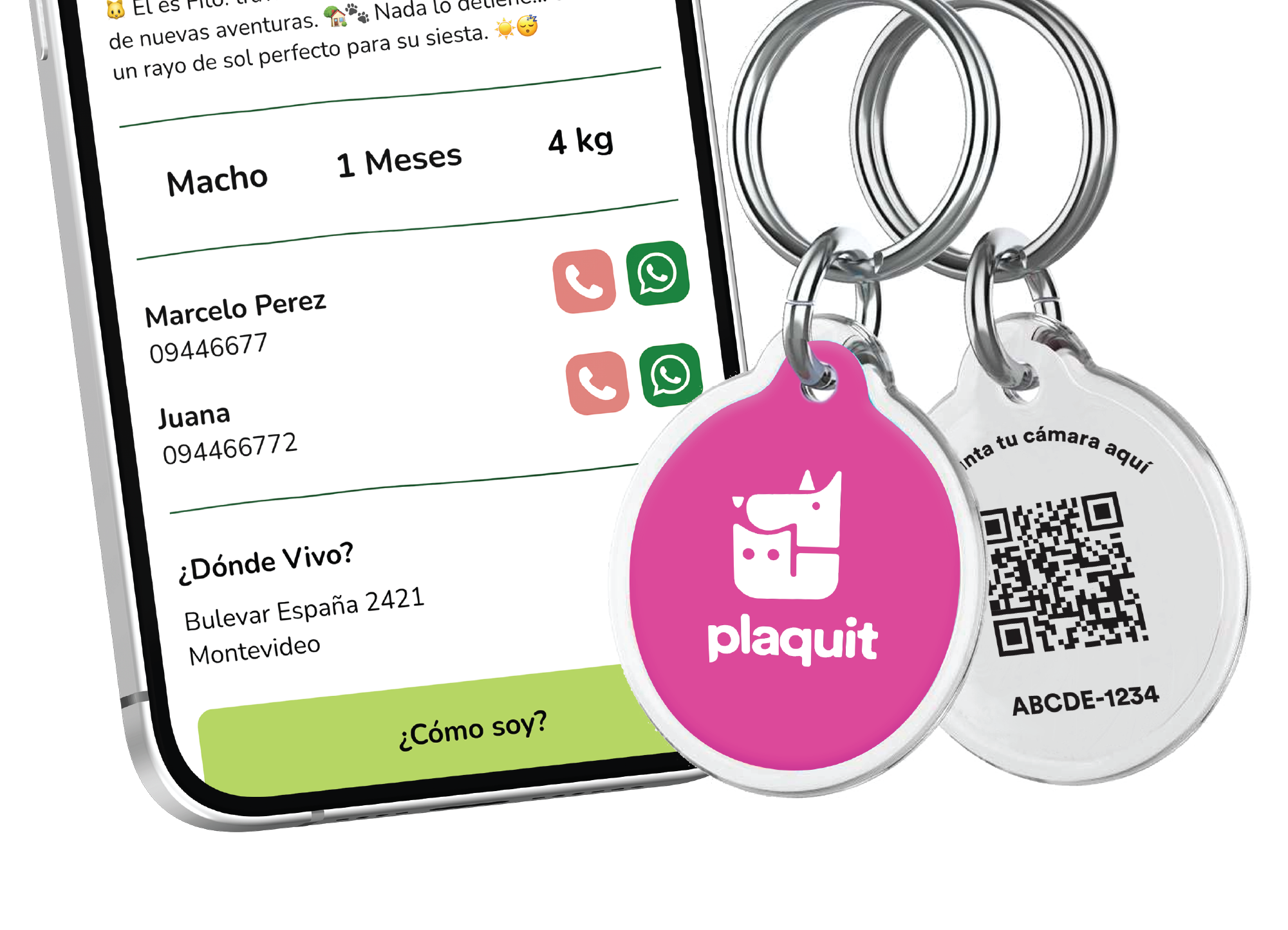 Cualquier persona que apunte con la cámara de su celular a Plaquit tendrá acceso al perfil online de su mascota sin necesidad de descargar ninguna aplicación. El perfil en línea funciona como un sitio web normal.